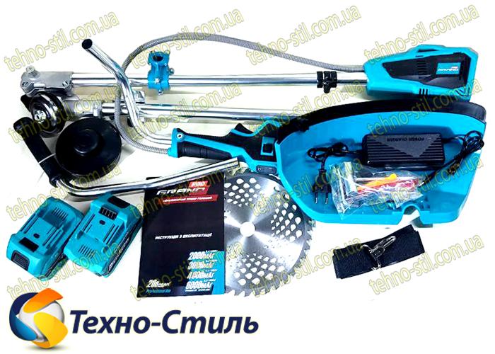 Коса аккумуляторная GRAND АТГ-20 2 в 1/4 BL - с верхним двигателем — это мощный мобильный инструмент, сочетающий удобство отсутствия кабелей с высокой производительностью бензиновых аналогов. Верхнее расположение двигателя защищает электронику от попадания влаги и сока растений, позволяя косить сырую траву и использовать металлические ножи для жесткой растительности.