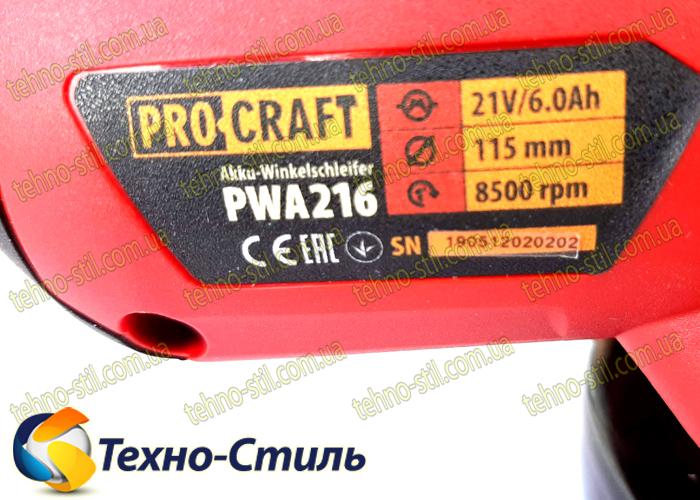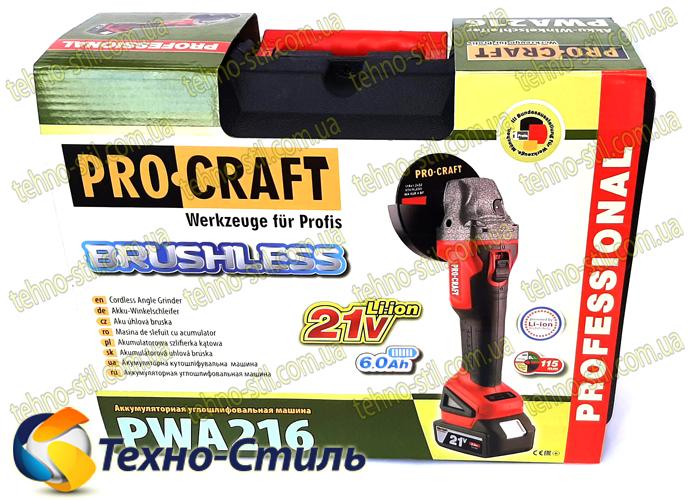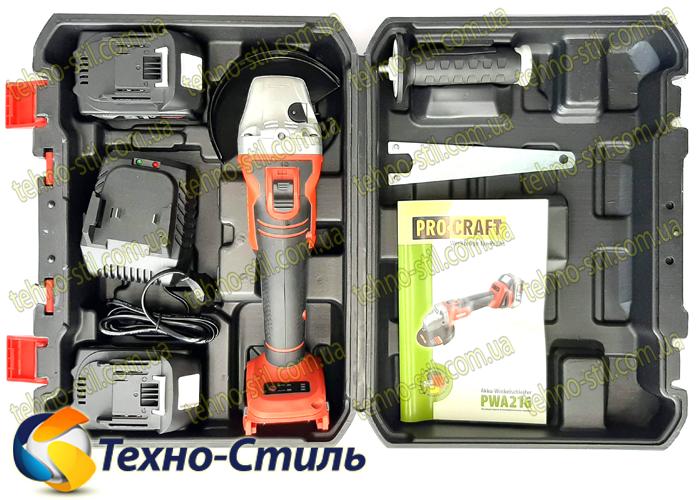 Болгарка аккумуляторная PRO-CRAFT PWA-216 (21V, 6,0 Ah, бесщеточная)