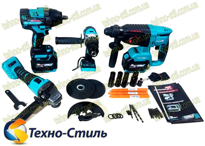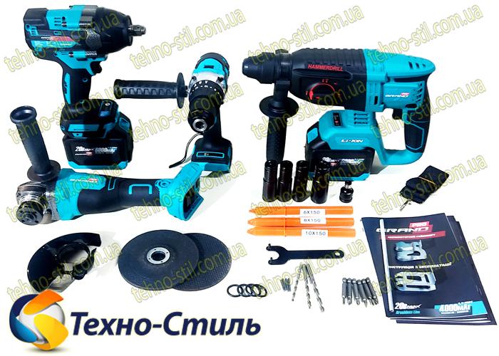 Набор-4 PROF GRAND аккумуляторных инструментов (МШУ-20BL/PRO + ДА-20/13UBL/PRO+ АГ-800UBL+ПА-20/26BL)