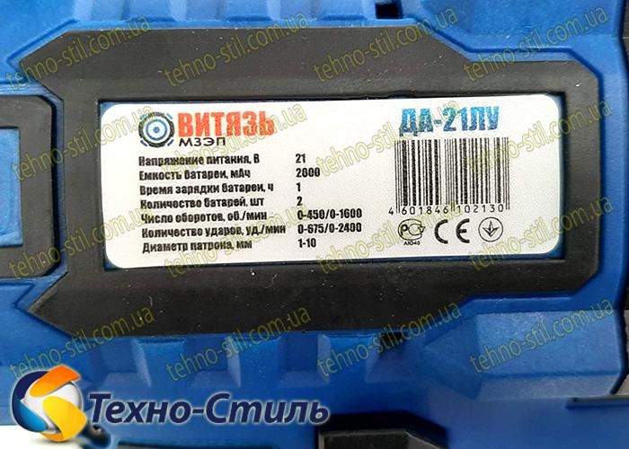 - шуруповерт Витязь ДА-21ЛУ Li-ion;