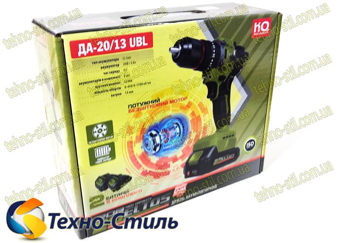 Бесщеточный, с функцией удара, с Li-ion аккумуляторм 20В, 2 А/ч, патрон 13 мм