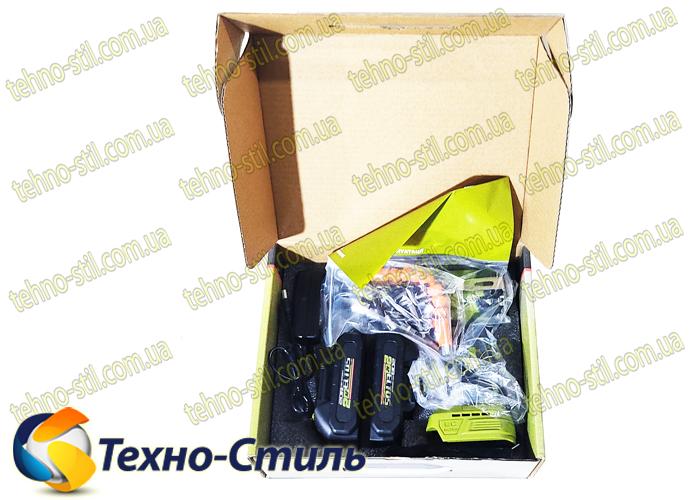 - два литий-ионных аккумулятора 20В, 2А/ч;