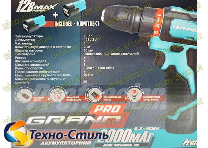 Шуруповерт аккумуляторный Grand ДА-12DFR/PRO