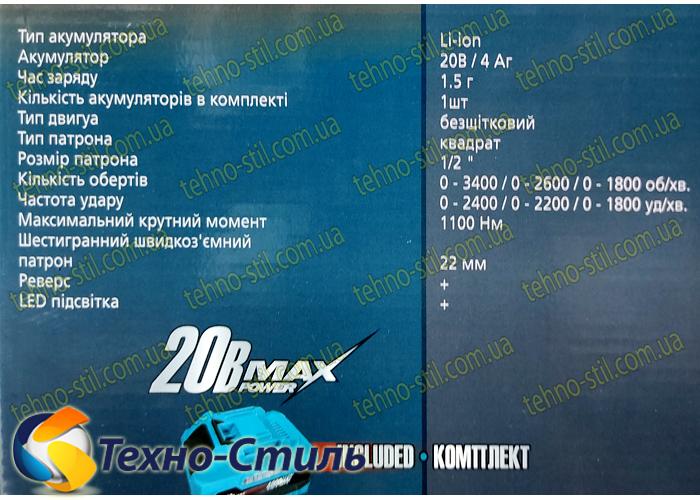 - Аккумуляторы - 1 шт. ( 20В, 4А/ч)
