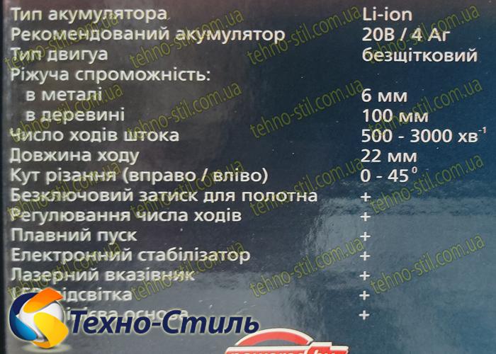 Электролобзик работает от литий-ионного аккумулятора с защитой от перезаряда-переразряда.