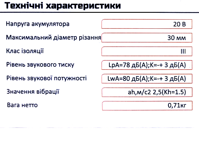 Максимальный диаметр резки: 30 мм.
