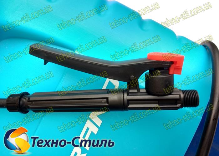 Надежный и производительный мембранный насос включается специальной клавишей управления, которая снабжена резистором для регулировки интенсивности напора. Телескопическая штанга-распылитель из нержавеющей стали позволяет производить обработку в самых труднодоступных местах. Опрыскиватель оснащен регулируемым соплом для изменения геометрии струи и специальной системой фильтрации. Фильтры легко снимаются и прочищаются при необходимости. Отзывы, размещенные в сети неоднократно подтверждают эффективность работы системы.