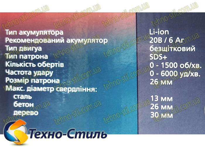 - Рекомендуемый аккумулятор 20В/6Ач,