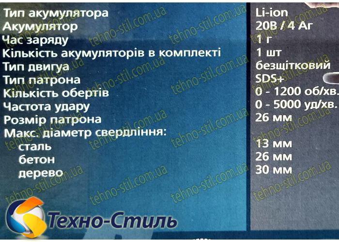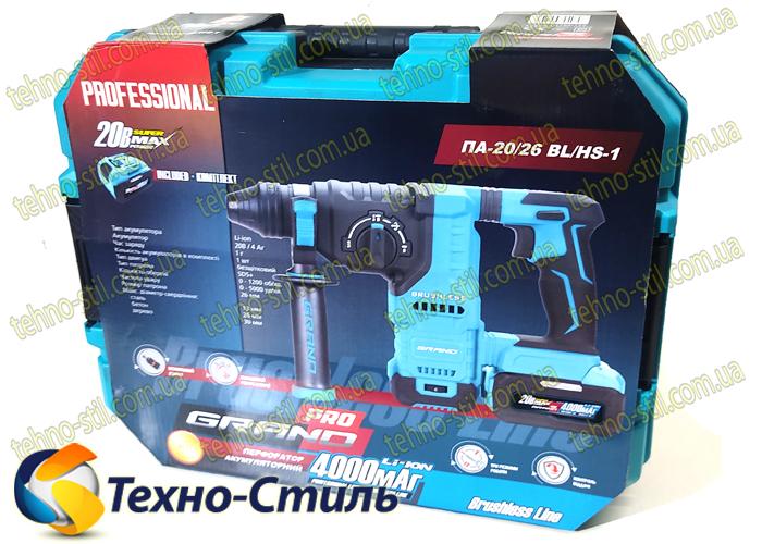 Перфоратор аккумуляторный GRAND ПА-20/26 BL/HS-1, (1 АКБ 4А/ч ind; Зарядное устройство 2,5А; Кейс)