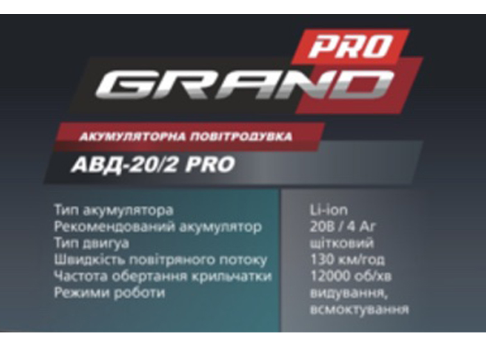 Воздуходуйка-пылесос аккумуляторная GRAND АВД-20/2 PRO