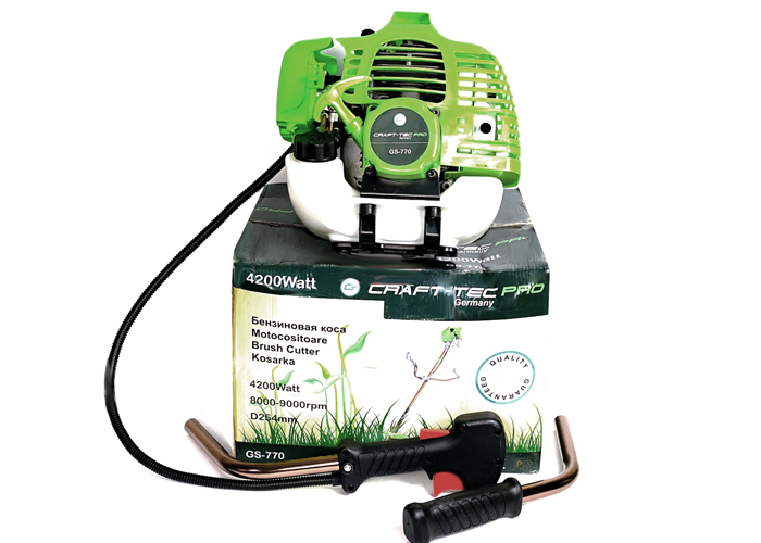Представляет собой достаточно мощное устройство для скоса травы, кустарников, сорняков, сухостоя, а также для заготовки сена. Такой широкий спектр применения механизма возможен, благодаря тому, что в комплекте с мотокосой прилагается как леска (для скоса травы), так и металлический нож (для покоса кустарных растений и сорняков). Цельный металлический вал мотокосы позволяет выдерживать большие нагрузки, а также продлить срок эксплуатации данного инструмента