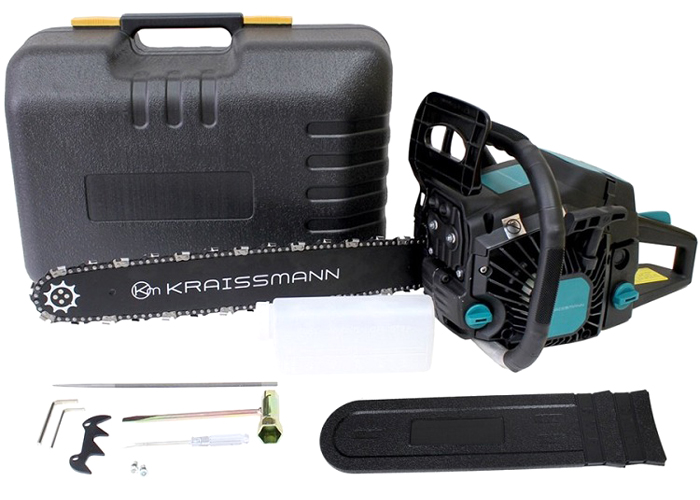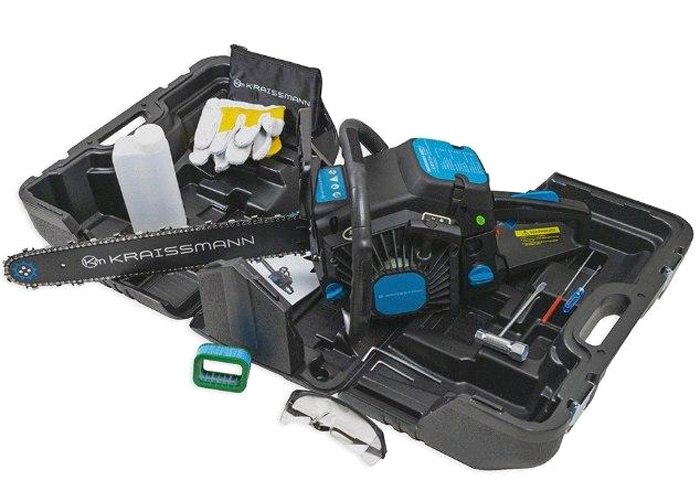 Бензопила Kraissmann KSC 65, шина - 1 шт., цепь - 1 шт., набор инструментов, руководство пользователя, ёмкость для смешивания топлива и масла,запасной воздушный фильтр, пластиковый кейс