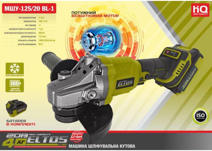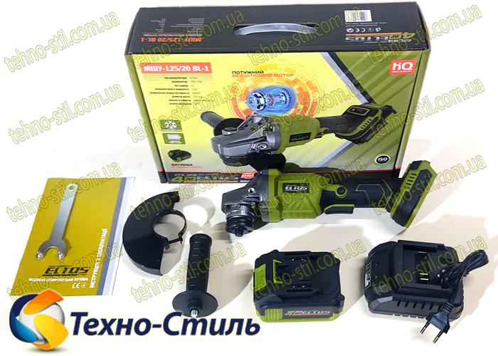 Болгарка аккумуляторная с бесщеточным двигателем МШУ-125/20 BL-1 из линейки Eltos: