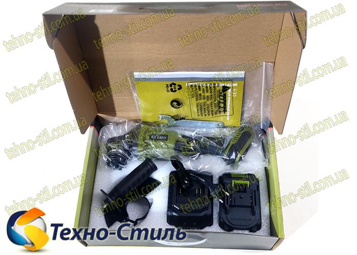 - Один литиевый аккумулятор 20 В, 4 А./Ч.;
