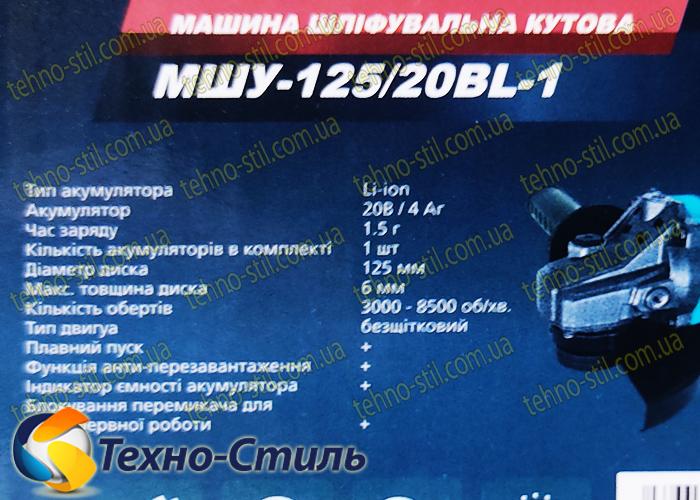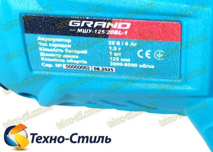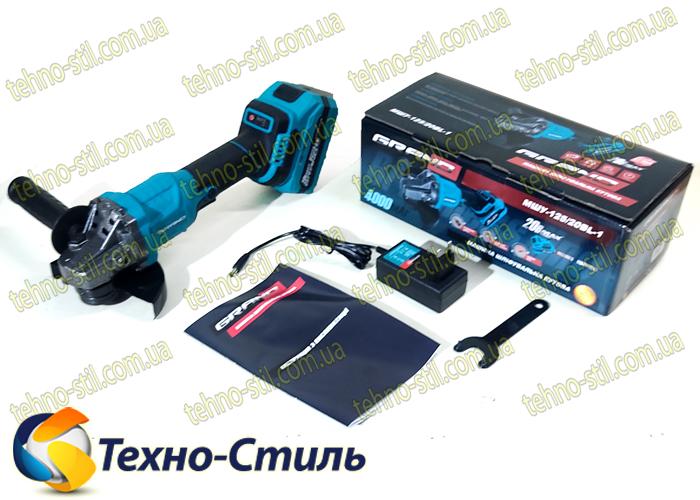 Болгарка аккумуляторная Grand МШУ-125/20BL-1 , Kickback + SDS шайба0 в коробке, 1АКБ высокотоковая, зарядное устройство, Бесщеточный двигатель