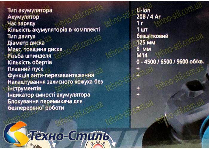 Болгарка аккумуляторная Grand МШУ-20 BL/HS-1, в коробке, 1АКБ, зарядное