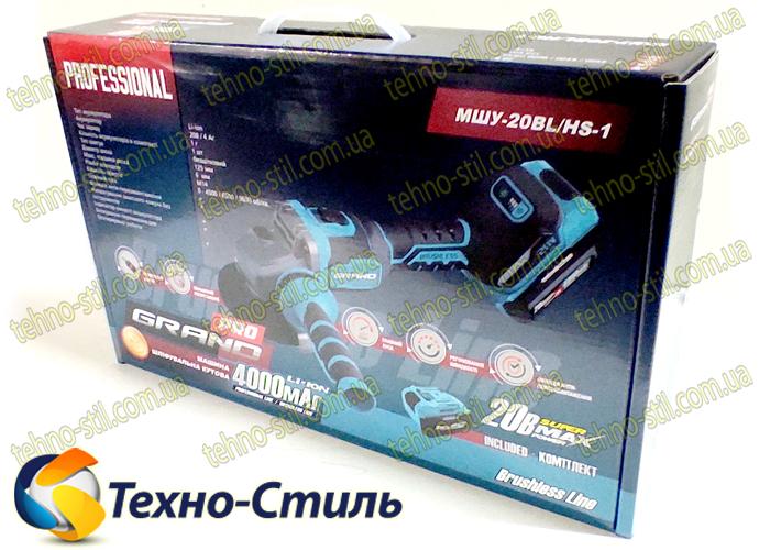 Аккумуляторная болгарка Grand МШУ-20 BL/HS-1, Бесщеточный двигатель