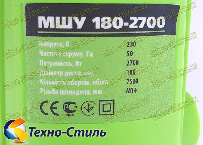 Технические характеристики Болгарки Белорус МТЗ МШУ 180-2700: