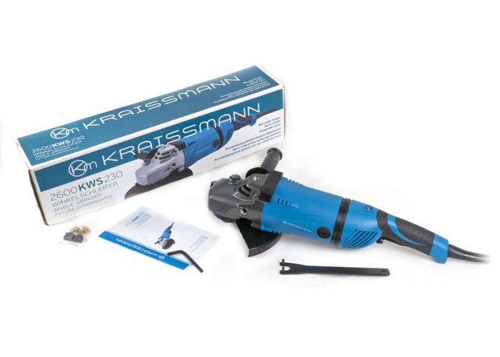 Болгарка KRAISSMANN 2600 KWS 230 оснащена системой трехстороннего крепления рукояти и возможностью быстрой замены щеток, не прибегая к услугам сервисного центра. Корпус создан из прочного пластика.
