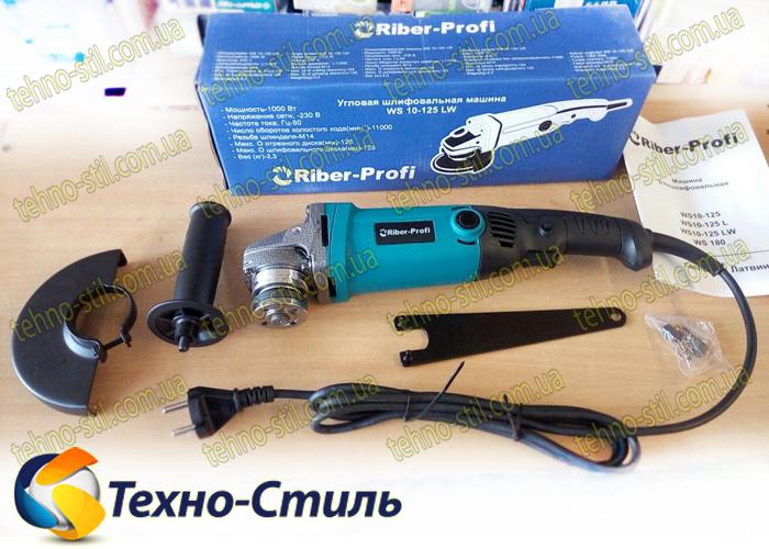 Болгарка Riber-Profi WS 10-125L, длинная ручка удобна в работе, позволяет работать одной рукой. L– универсальный мощный инструмент для бытового применения. Им легко выполнять резку, зачистить или отшлифовать метал, пластмассу, камень и иные материалы. Отличная производительность обеспечивается выбранной большой мощностью мотора (1000 Вт), Надежность устройства в продуманной системе вентиляции, качественных подшипниках. У нее не большие габариты, что позволяет удобно держать прибор в руке.