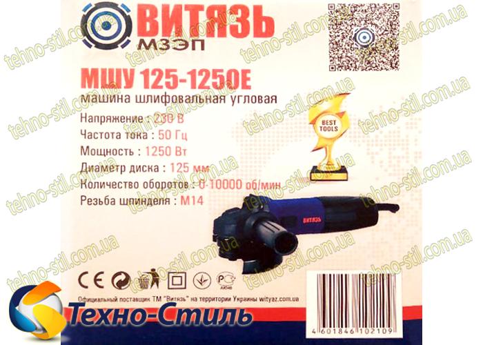 Технические характеристики Болгарки Витязь МШУ 125/1250Е :