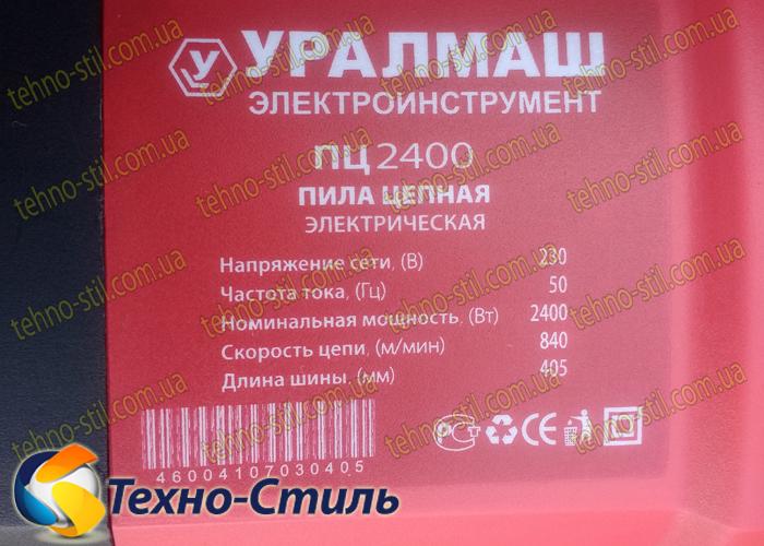 Цепная пила Уралмаш ПЦ-2400 — переносная, механическая пила, работающая от электросети, рабочей частью которой является цепной пильный комплект, состоящий из замкнутой в кольцо цепи, перемещающейся по направляющей шине. Шина и цепь съёмные. Основное применение - заготовка дров, обрезка сада.