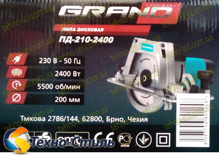 Технические характеристики дисковой пилы Grand ПД-210-2400 :