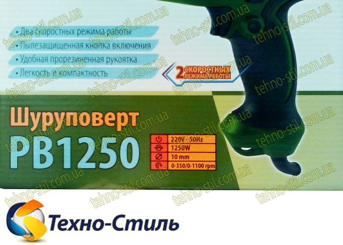 Сетевой шуруповерт PROCRAFT PB 1250, 2-х скоростной, с металлическим патроном, подсветка