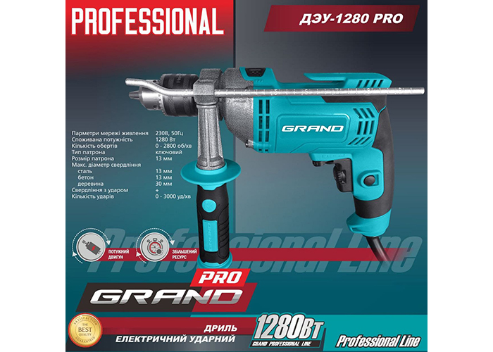 Дрель ударная Grand ДЭУ-1280 PRO, Чехия, г. Брно