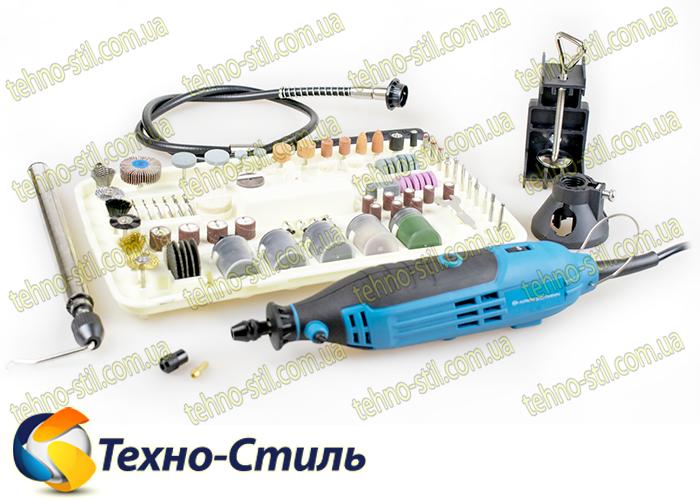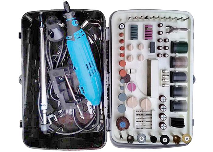 В комплекте: 180 насадок, гибкий вал, телескопический штатив