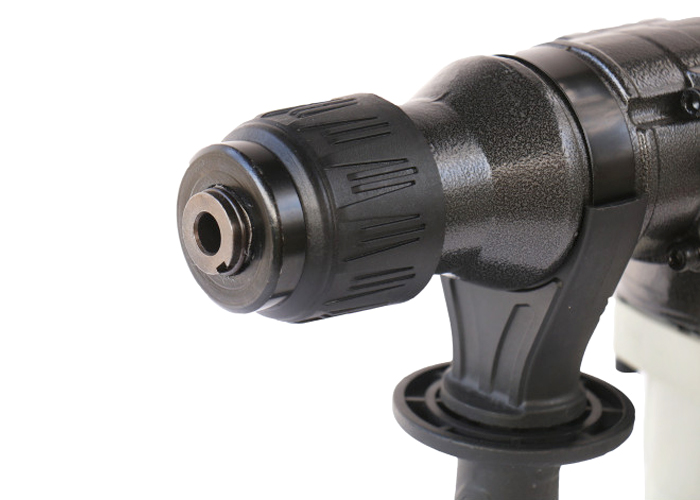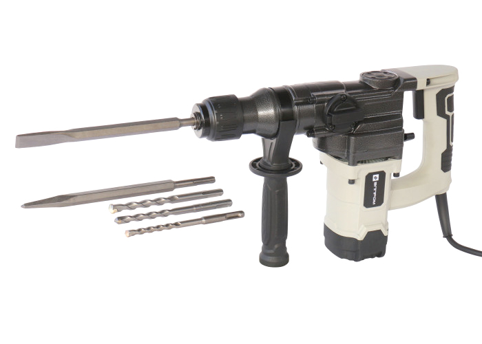 Комплектация: Боковая рукоятка, ограничитель глубины сверления, зубило, пика, 3 бура, смазка, кейс, ключевой патрон с переходником.