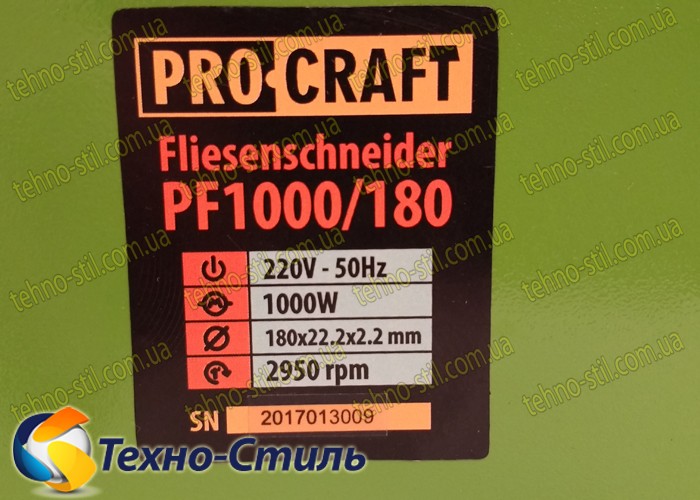 Плиткорез Procraft PF 1000/180 электрический станок, оборудованный асинхронным движком мощностью 1000 Вт. Употребляется для мокрого реза разных видов плитки и каменных болванок. Железный упор и регулируемый стопор закрепляют заготовку для исполнения распилов высочайшей точности. Диск с алмазным напылением прикрыт железным кожухом, обеспечивая сохранность оператора при труде. Техника безопасности способствует то, что пильный диск электроплиткореза обеспечен кожухом, обеспечивающим защиту оператора от пыли, искр и сколов с диска. Стол прибора сделан из нержавеющей стали, которая обладает антикорозийными свойствами (не ржавеет). Аккуратный распил. В системе стола есть железный упор для высокоточных распилов плитки. Станок делает наклонные распилы с разным углом от 0 по 45 градусов.