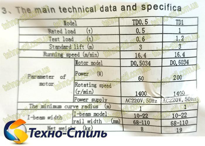 - Предназначена для любого типа электрических тельферов