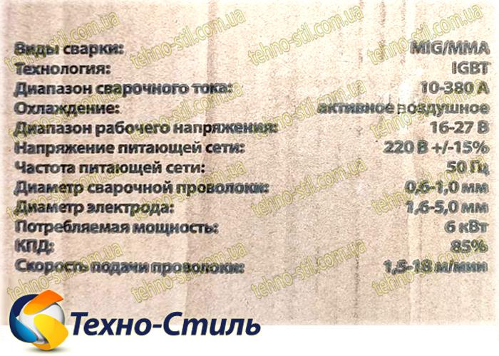Характеристики модели Минск МGА MIG/MMA-380N IGBT: