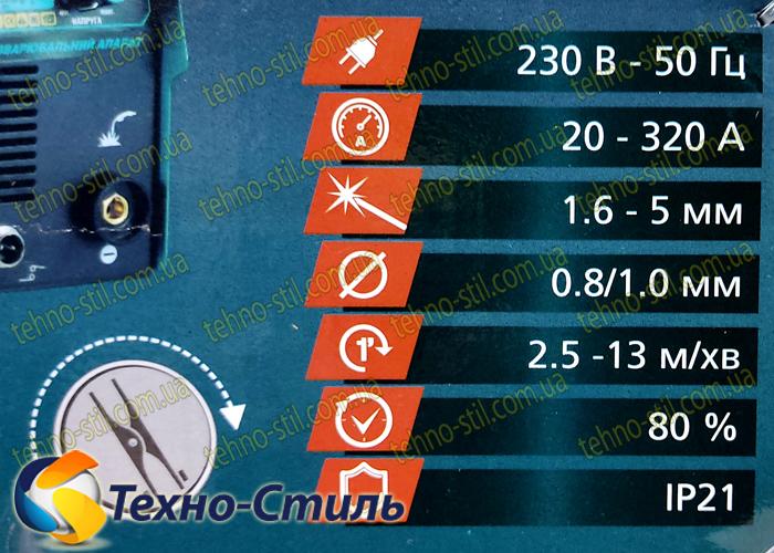 - Сварочный ток - 20-320 Ампер;