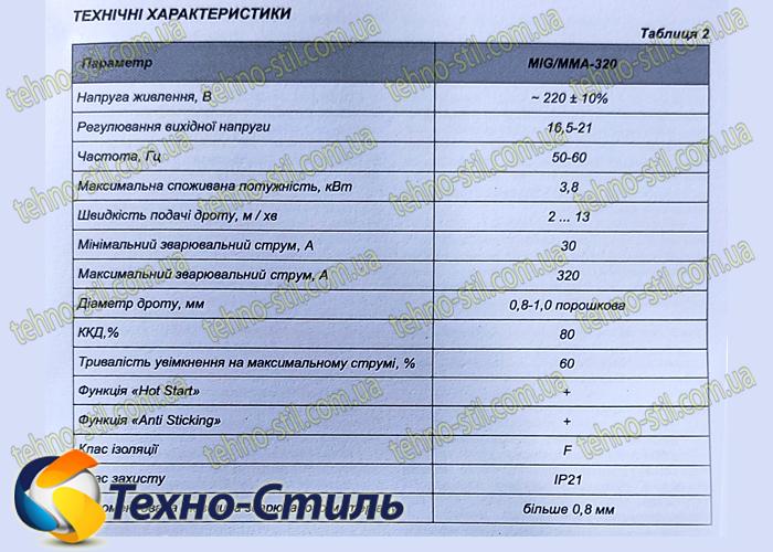 Тех. данные полуавтомата Grand MIG/MMA-320: