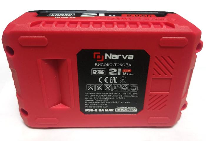 Аккумулятор NARVA PSX-8.0 A Li-Ion – это ваш выбор для длительной, эффективной и надежной работы. Выбирайте неподведемую мощность!
