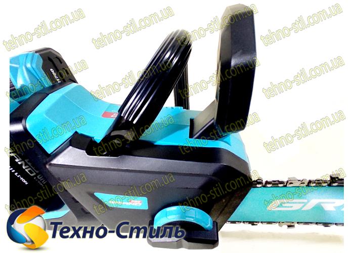 - Пила имеет два скоростных режима. При помощи дополнительной кнопки можно менять скорость вращения цепи.