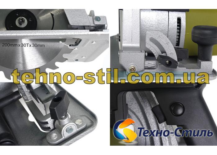 З можливістю стаціонарної установки (переворотна), Діаметр диска: 200мм, Глибина пропилу: 68 мм, Напруга: 220В/50Гц, Потужність: 2350Вт, Кількість обертів: 0-5500об./хв. 1 диск