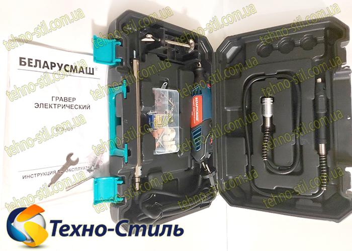 Гравер Беларусмаш, Гнучкий вал, штатив, комплект насадок, кейс для зберігання та транспортування, інструкція користувача.