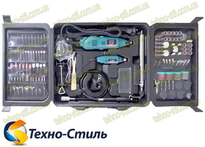 У наборі присутні аксесуари - насадка з ліхтариком, гнучкий вал, пензлик, змінне оснащення.
