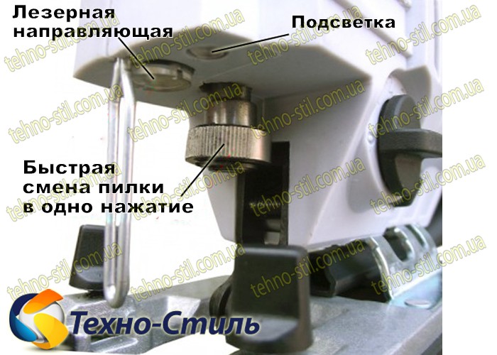 * У моделі передбачено регулювання обертів, лазерна напрямна, підсвічування зони роботи. Відмінною особливістю цієї моделі є наявність обдування зони роботи, завдяки якій область різання залишатиметься чистою.
