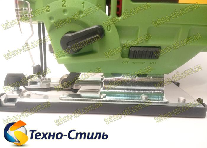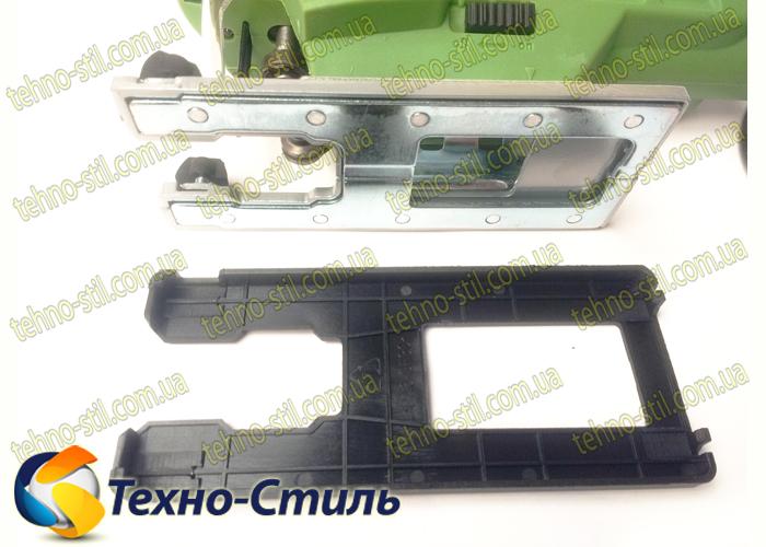 - Знімний пластмасовий кожух встановлений на підошві лобзика