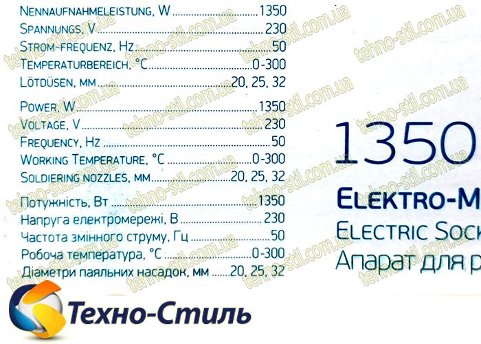 | Потужність паяльника, Вт | 1350 |