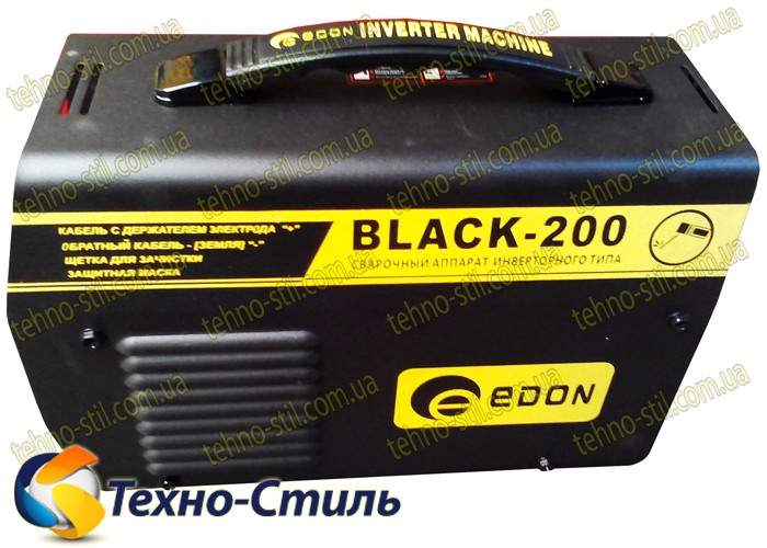 Зварювальний апарат Edon Black-200 обладнаний усіма перевагами інверторних технологій: відсутнє прилипання електрода, стабілізація та м'який підпал дуги. Інвертор легко може проводити різання, зварювання, наплавлення кольорових, а також чорних металів, використовуючи штучні електроди до 4 міліметрів діаметра включно. З придбанням вентильного пальника з контактним запалюванням дуги та падаючого пристрою можна розширити можливості апарату Edon Black-200 до напівавтоматичного або аргонно-дугового зварювання. При цьому має економне споживання електрики, через що може працювати від генератора, та захищений від короткого замикання та перепадів напруги.