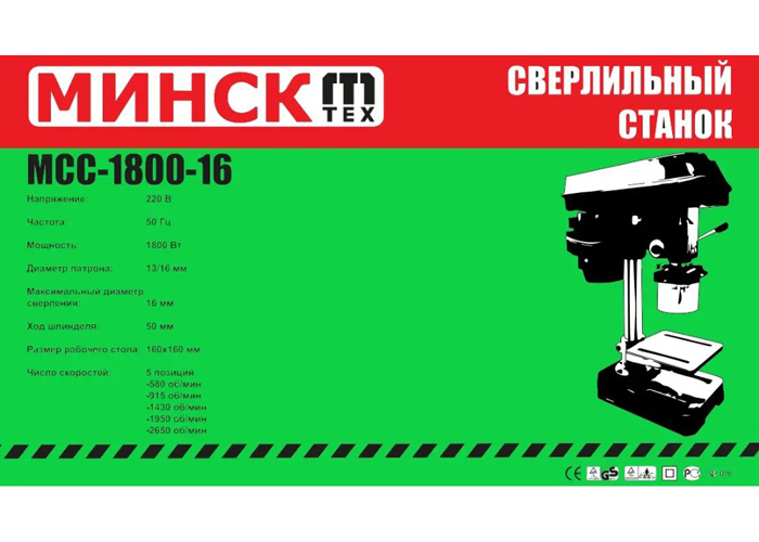Свердлильний верстат МСС-1800-16 (Без лещат, патрон 13 мм) з лінійки МінСК